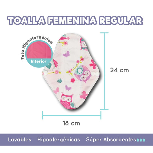 Pq 5 Toallas Fem Regulares Ecológicas 24x18 + Wet Bag Regalo
