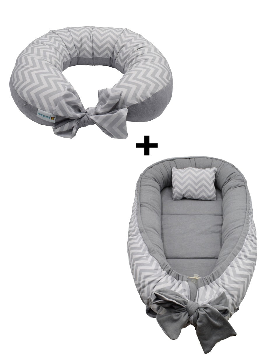 -Funda de almohada doble vista con cierre invisible a un costado y cintas ideales para anudar y convertirla en almohada de lactancia y anti reflujo.