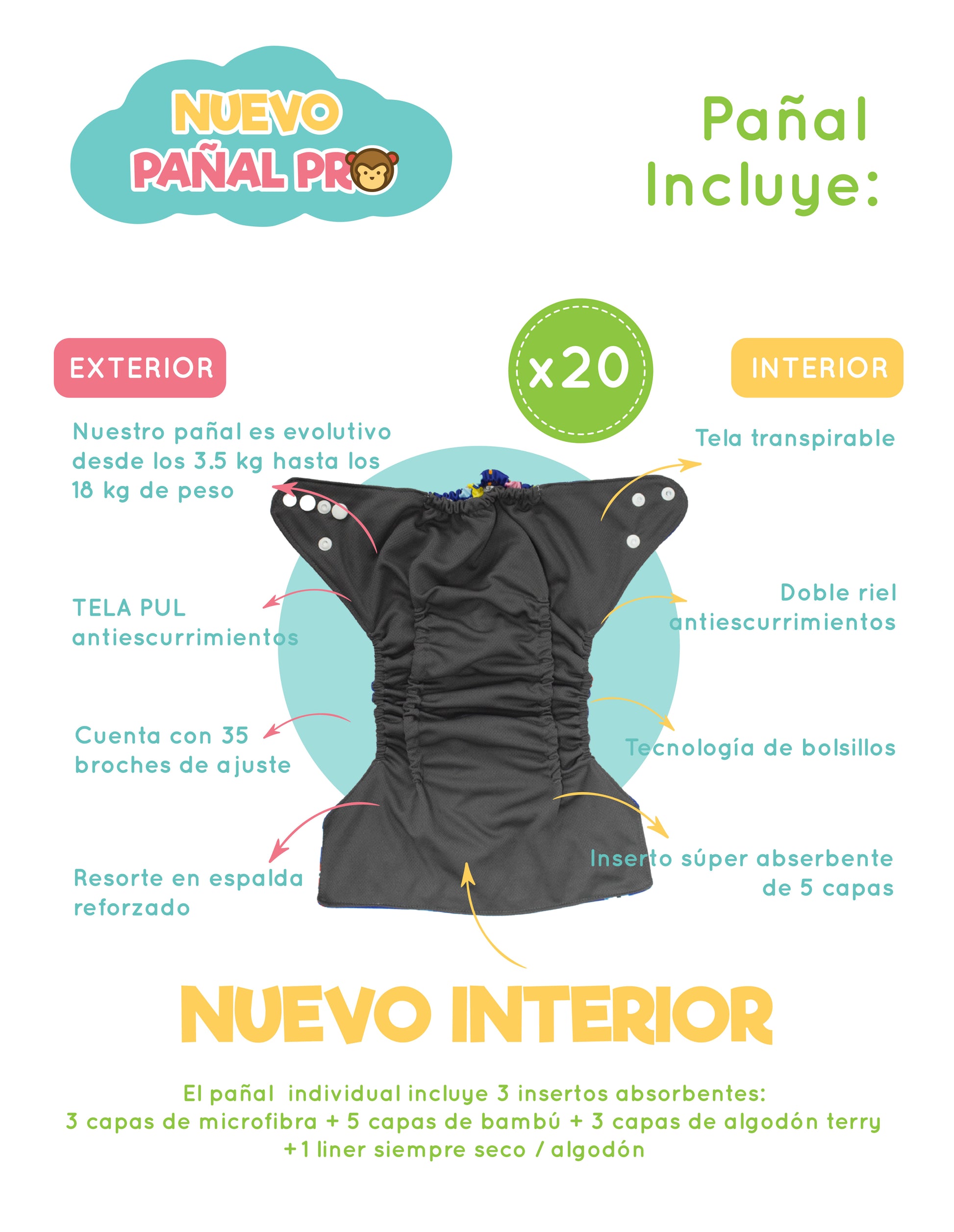 Paquete 20 Pañales Ecológicos Absorción PRO V3.0